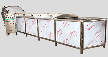 A葉菜類:收菜--分揀輸送--氣泡清洗(粗洗)--氣泡清洗殺菌機(jī)--噴淋清洗(凈洗)--風(fēng)干瀝水--包裝輸送。
